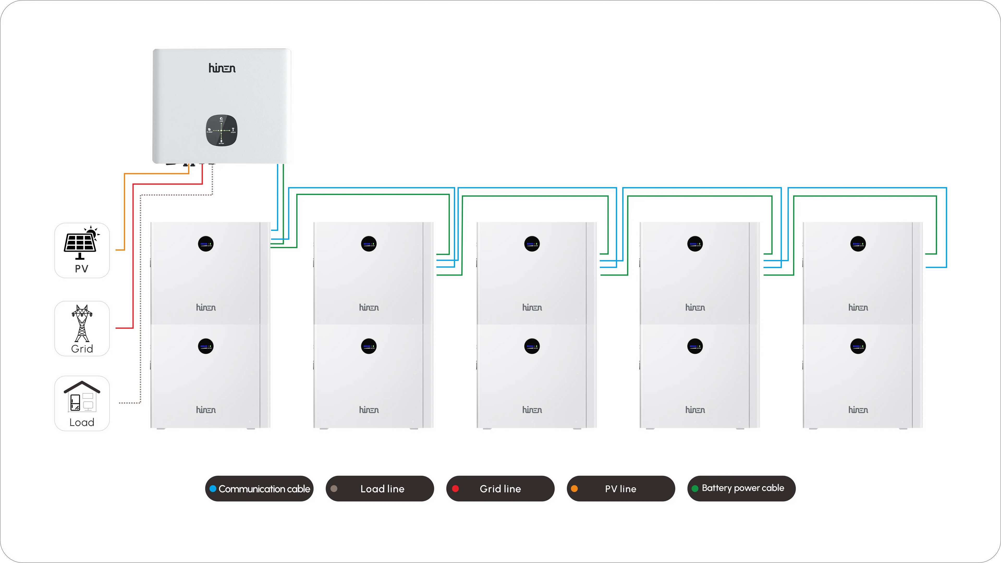 Die Hochkapazitäts-Energiespeicherlösung von Hinen wird durch das Clustern von Batterien erreicht. Diese Lösung ist ideal für Regionen mit erheblichen Unterschieden bei Spitzen- und Nebenkosten für Strom. Sie ermöglicht es, überschüssige Energie ins Netz einzuspeisen, um vom Preisunterschied zu profitieren. Sie eignet sich für Gebiete mit unzuverlässigen Stromversorgungen, die eine ausreichende Energiespeicherung erfordern, um längere Ausfälle zu bewältigen.